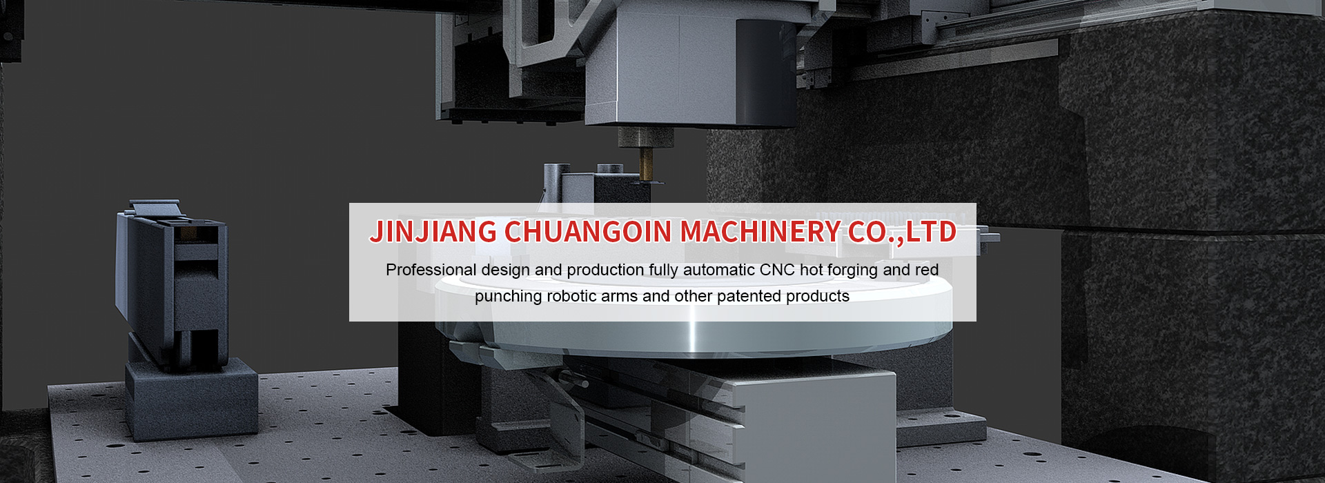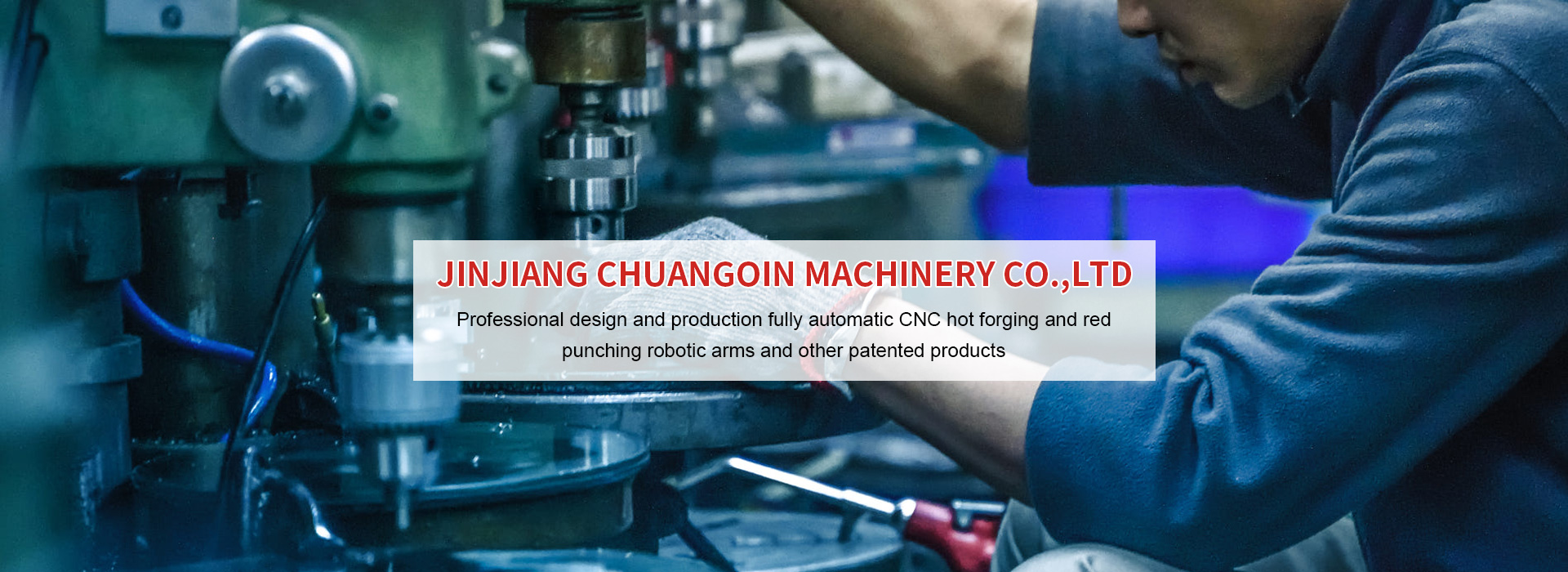 JINJIANG CHUANGOIN MACHINERY CO.,LTD was established in February 2013, specializing in the design and production of patented products such as CNC hot forging multi station synchronous robotic arms. The patented product developed by the company, the CNC multi station synchronous hot forging robot arm, concentrates several stations on one punch press and replaces manual operation with a robot arm. The original operation of 5 people on 2 punch presses has been changed to 1 person on 1 punch press, reducing the number of workers and labor intensity. It has been well received by customers and sold throughout the country. Our company philosophy is beauty, innovation, and diligence. We will continuously develop new products, improve product quality, and improve our after-sales system to ensure that customers can buy with confidence, use with happiness, and have peace of mind after sales.